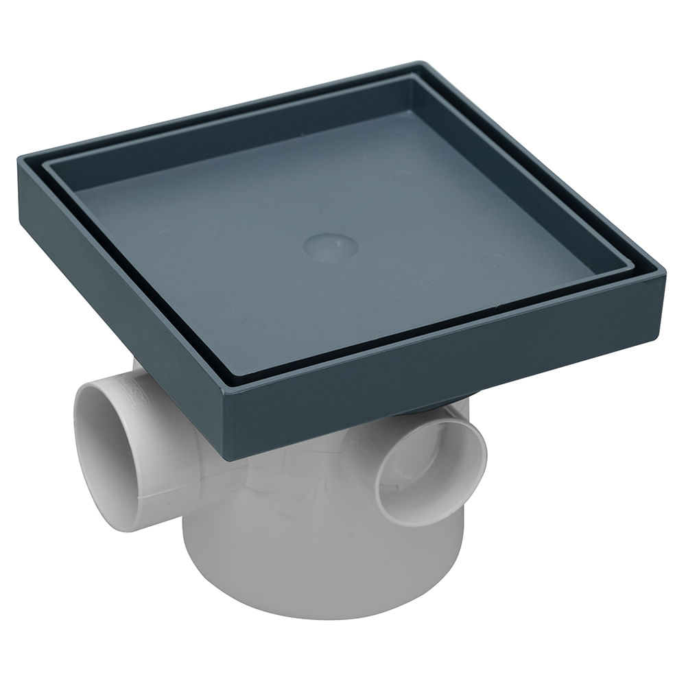 Caixa Sifonada 10x12cm de 3 Entradas com Ralo Oculto 15x15cm Cinza Astra