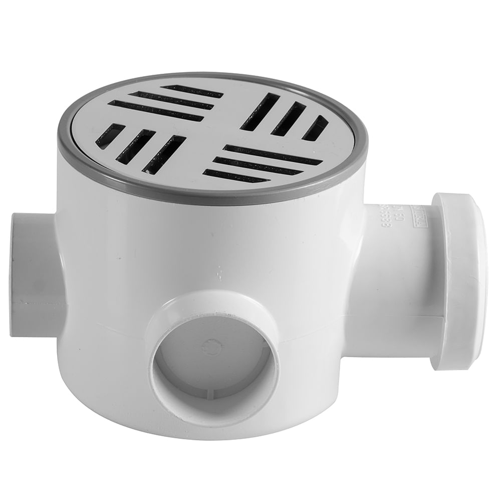 Caixa Sifonada 10x9cm de 3 Entradas com Virola e Grelha Redonda em Alumínio Astra