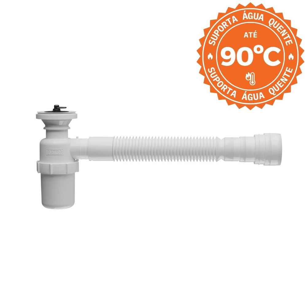 "Sifão Flexível Universal 61cm com Copo e Válvula de 1 1/4"" e 1 1/2"" Branco Astra" - Sifão Sanfonado Universal com Copo com Válvula de 1 1/4" e 1 1/2" Astra